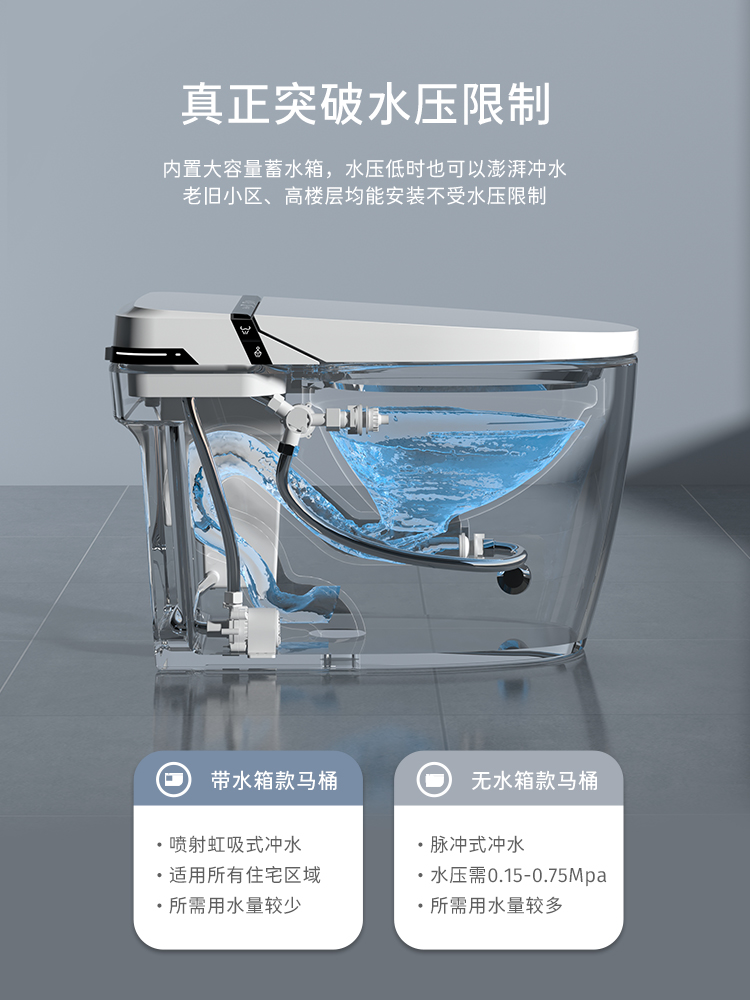 Power outage flushing, built-in backup battery, power outage still full of momentum;